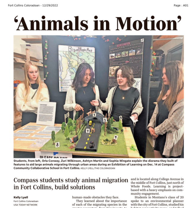 Coloradoan reporter, Kelly Lyell, was invited to attend our December Exhibition of Learning by our science teacher, Dominique Montaño, and he graciously accepted the offer! As this front-page, above-the-fold article makes clear, Compass students really impressed this veteran reporter. Read the full story here as a PDF!